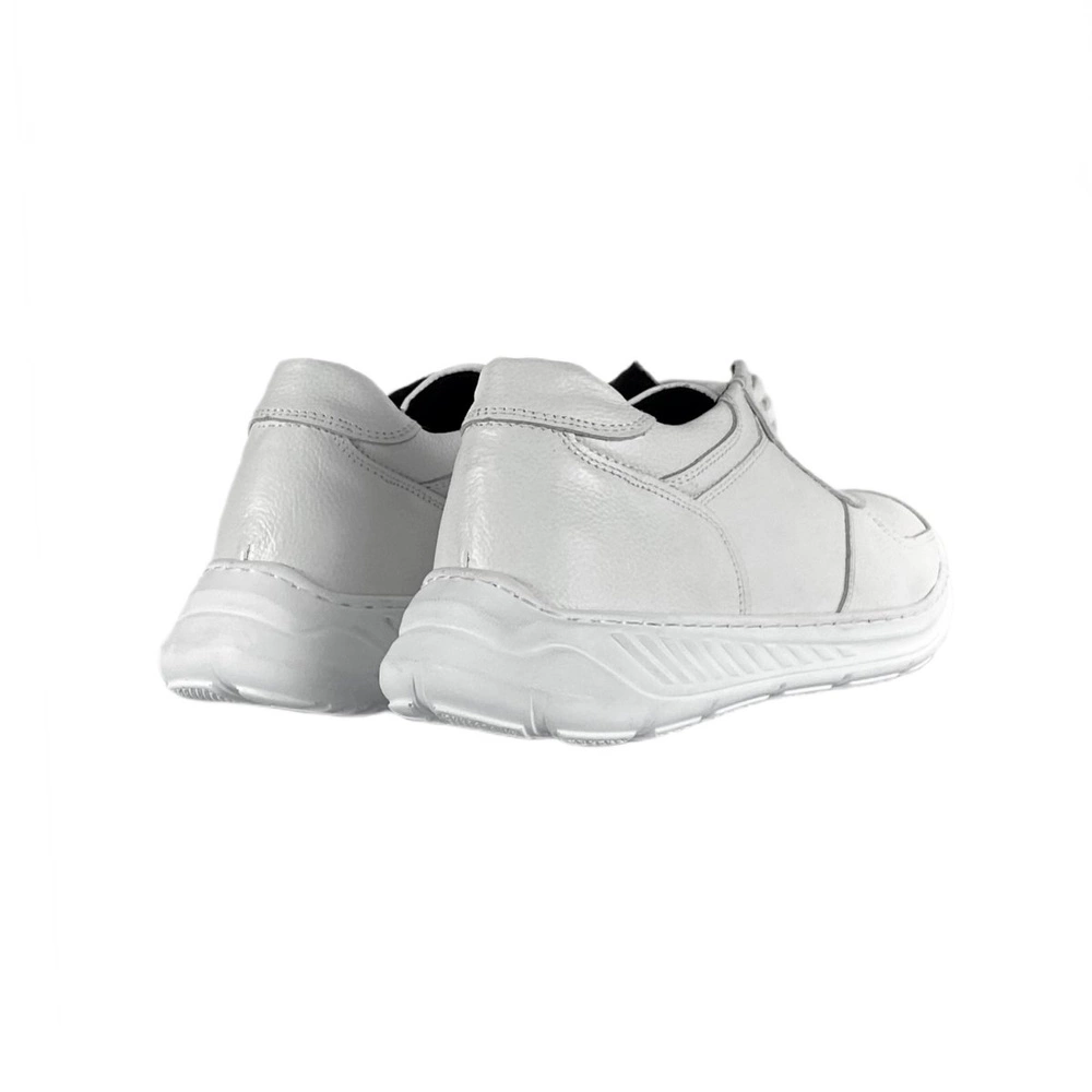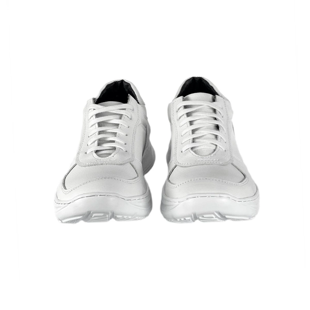 Calzatura sportiva in pelle pieno fiore di colore bianco.