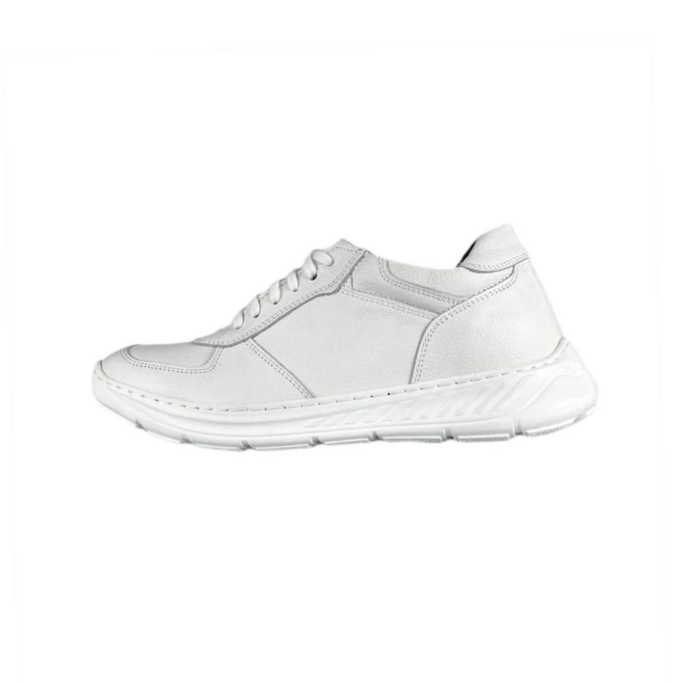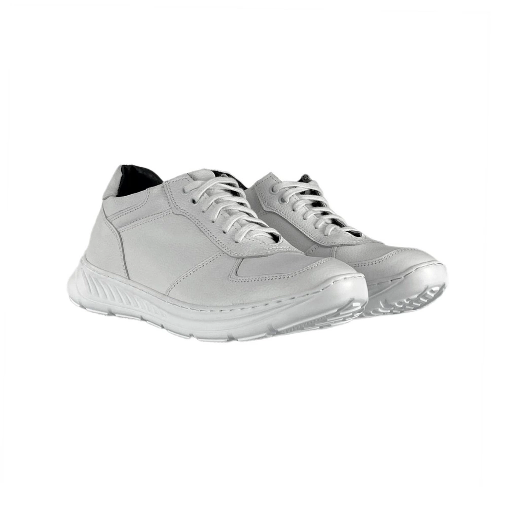 - Scarpe sportive da uomo in pelle naturale di colore bianco.